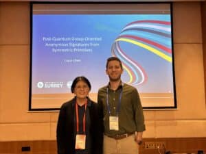 Prof. Liqun Chen (University of Surrey) delivered the keynote “Post-Quantum Group-Oriented Anonymous Signatures from Symmetric Primitives,” discussing the evolution of anonymous signature schemes such as Direct Anonymous Attestation (DAA) to remain secure in the post-quantum era and support scalable, privacy-preserving authentication.